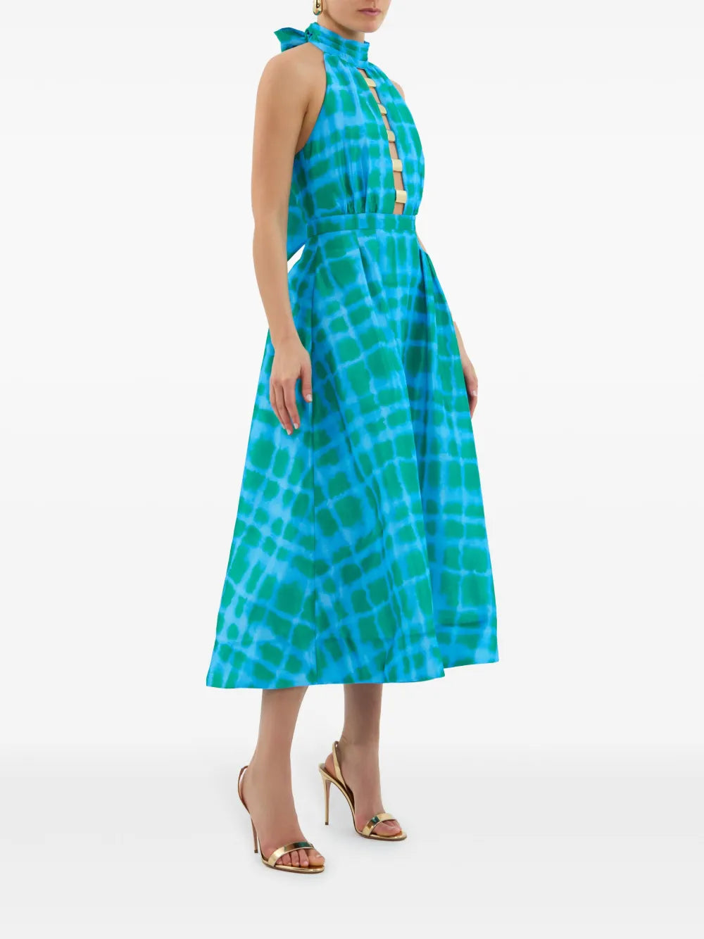 The Serafina Halter Midi Dress is an eye-catching piece, tailored from premium printed slub taffeta...