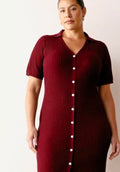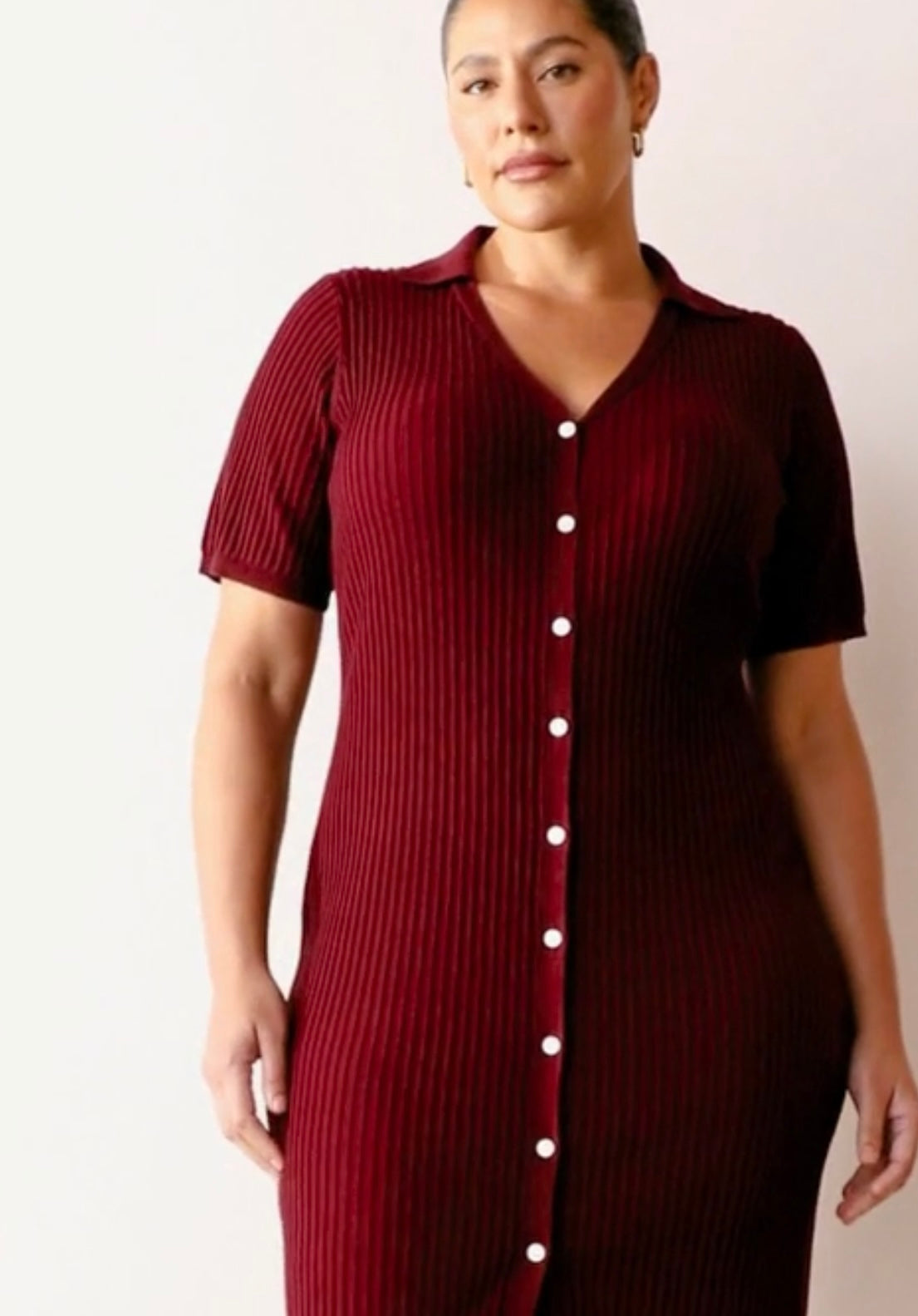 A stretchy, comfortable, button down dress with a short sleeves and a collared v neck, a dress you can dress up or down and use for layering in between seasons.