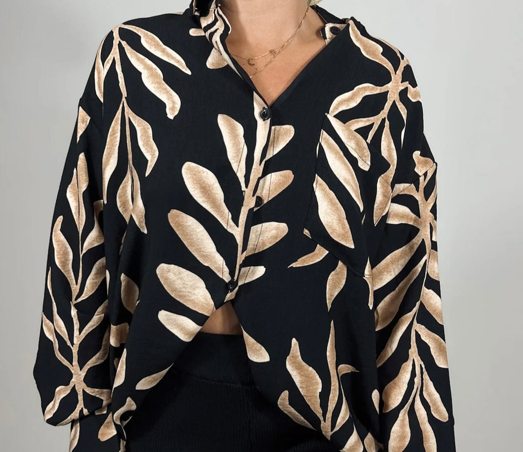 This oversized button up blouse will have you going from office to dinner to soccer to brunch with the girls. Pair it with denim or work pants, even a high waisted skirt or leggings. It is a relaxed fit that falls beautifully on the body and will have you wearing style and comfort all day or night long.
