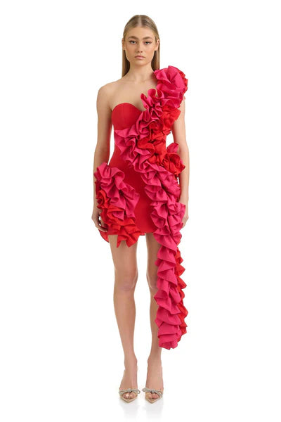 The Yazmine Dress embodies a modern femininity that makes for effortless dressing. Featuring a fitted bodice and waist with voluminous gathered ruffles that delicately embrace the silhouette, resulting in a contemporary and opulent masterpiece. Fully lined and fastened at the centre back with an invisible zipper, the Yazmine Dress redefines modern sophistication, ensuring you make an unforgettable statement.