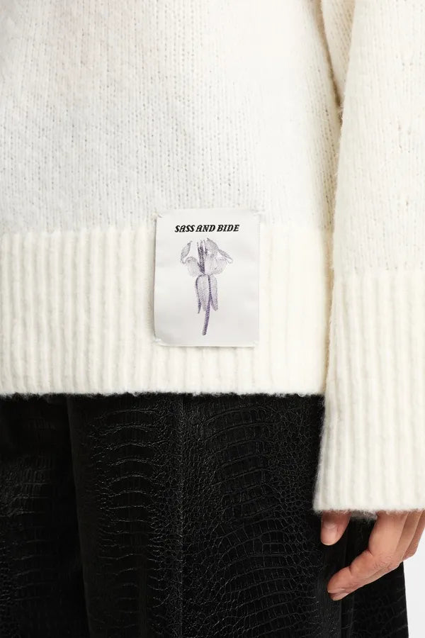 Fabulously oversized and gorgeously fluffy, this knit polo jumper creates a slouchy, loose fit with dropped shaping at the shoulders, long relaxed sleeves and chunky rib finishes. Offered in white, the jumper sweeps over the skin in a luxe yarn blend made of cashmere, responsibly sourced RWS wool, and recycled nylon made from discarded fishing nets, helping to reduce plastic ocean waste.