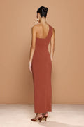 A body-con midi dress made in signature Sonya Moda yarn. This dress features an asymmetrical silhouette and flattering keyhole at center front.
