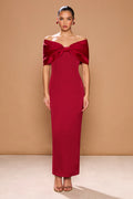 Designed in a richly hued red, the Belluno Dress is made for a moment. Featuring a graceful oversized off-the-shoulder bow design with a fitted bodice creating an ultra-flattering silhouette.