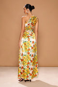 The sensual, yet structured one-shoulder silhouette features an adjustable tie at the hip/waist, with sculptural ruching to showcase an extremely feminine shape and high split for a flattering fit. The Nour Maxi Dress is a full length sophisticated maxi dress designed to wear day to night, which exudes classic elegance mixed with sultry sophistication.