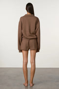 Designed as your everyday go-to, these sport shorts feature a soft cotton outer in carob chocolate and a terry back-loop lining for comfort. Finished with a subtly frayed hem, an elasticated waistband, and an adjustable drawcord. Pair with the Collared Sportsweat Shirt for a coordinated look.