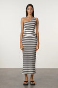 A versatile statement for the season, this longline skirt is crafted from a soft, mid-weight bouclé knit with a beautiful, natural drape. Featuring a custom stripe pattern in black, grey, and white, it’s designed with a sleek, fitted silhouette and a secure elasticated waistband. Versatile and modern—wear it as a skirt, a tube dress, or layer over the Marle Stripe Textured Knit dress for a chic long-sleeve look.